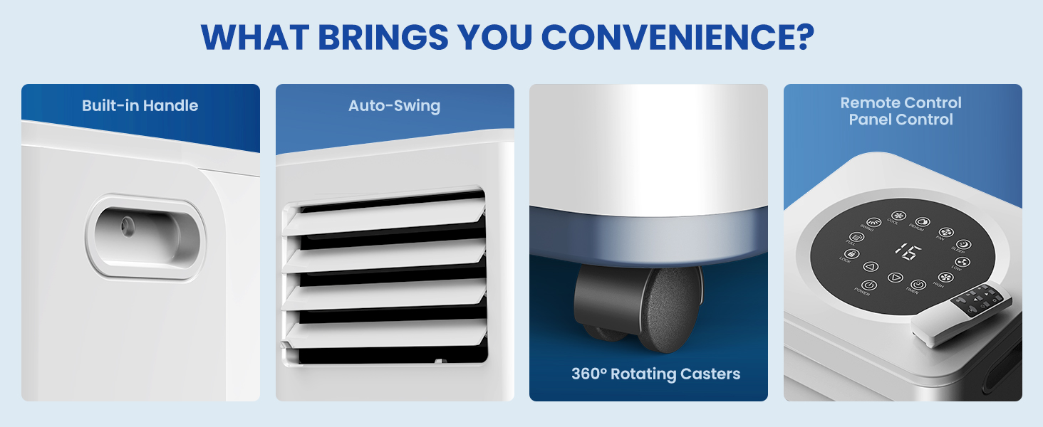 Air Conditioning Unit Portable Air Conditioner 9000 BTU 4-in-1 Dehumidifier, Cooling Fan with 2 Speeds, Digital Display & Remote Control, Window Kit